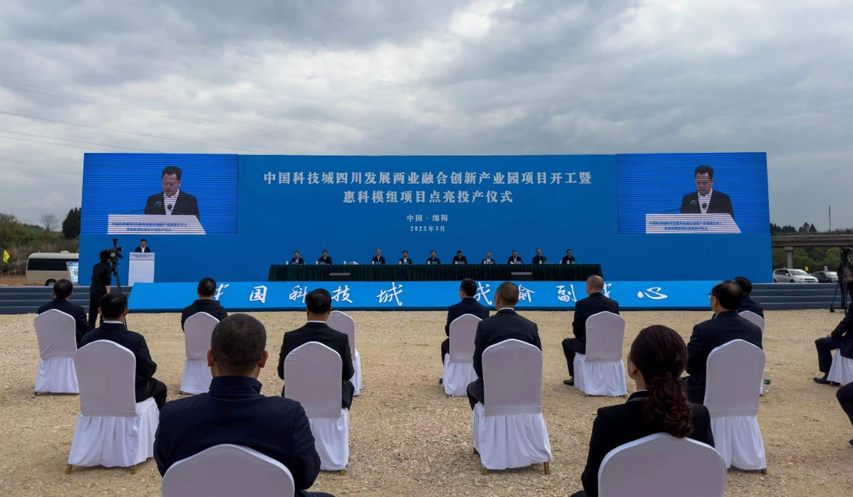 中國科技城四川發展兩業融合創新產業園項目開工暨惠科模組項目點亮儀式在綿舉行 為深入貫徹落實黨的二十大關于建設現代化產業體系戰略部...